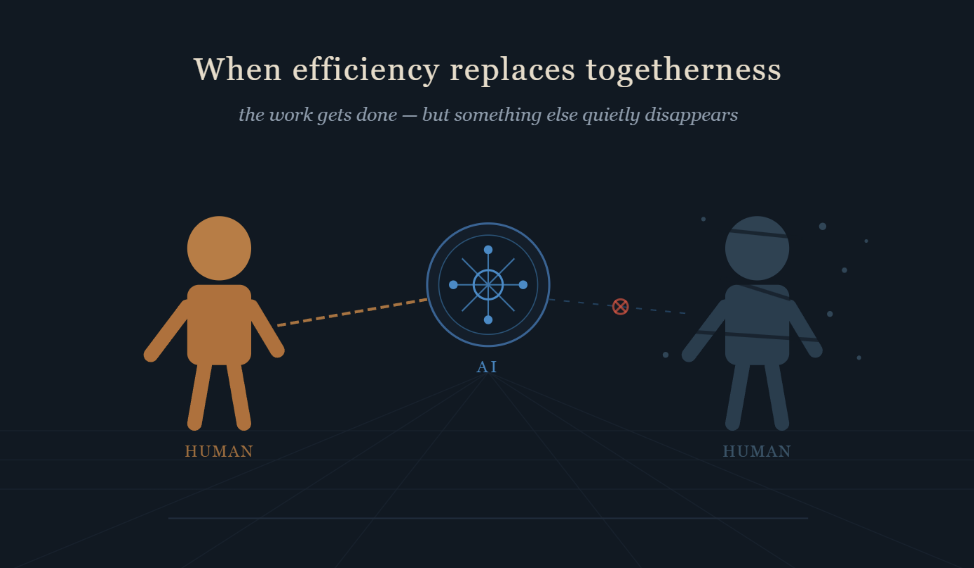 But here is the harder question worth sitting with: if your team could produce the same output tomorrow with half the human interaction — would you notice what was missing? And by the time you did, would it already be too late to get it back?